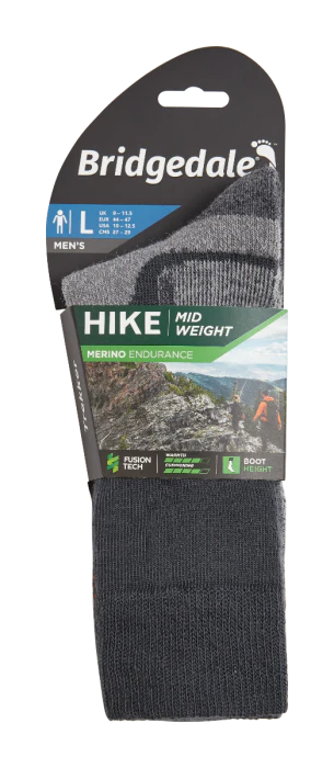 A boot-length sock for day hikers and trekkers who walk all year-round, the Hike Midweight Comfort features all-day protection with next-to-skin comfort. With its merino comfort fusion technology it creates a soft, fast-drying, durable sock with a close supportive fit around your foot. For finishing touches, a super stretchy ribbed cuff provides a looser unrestrictive fit around your calf allowing them to be worn up or down.