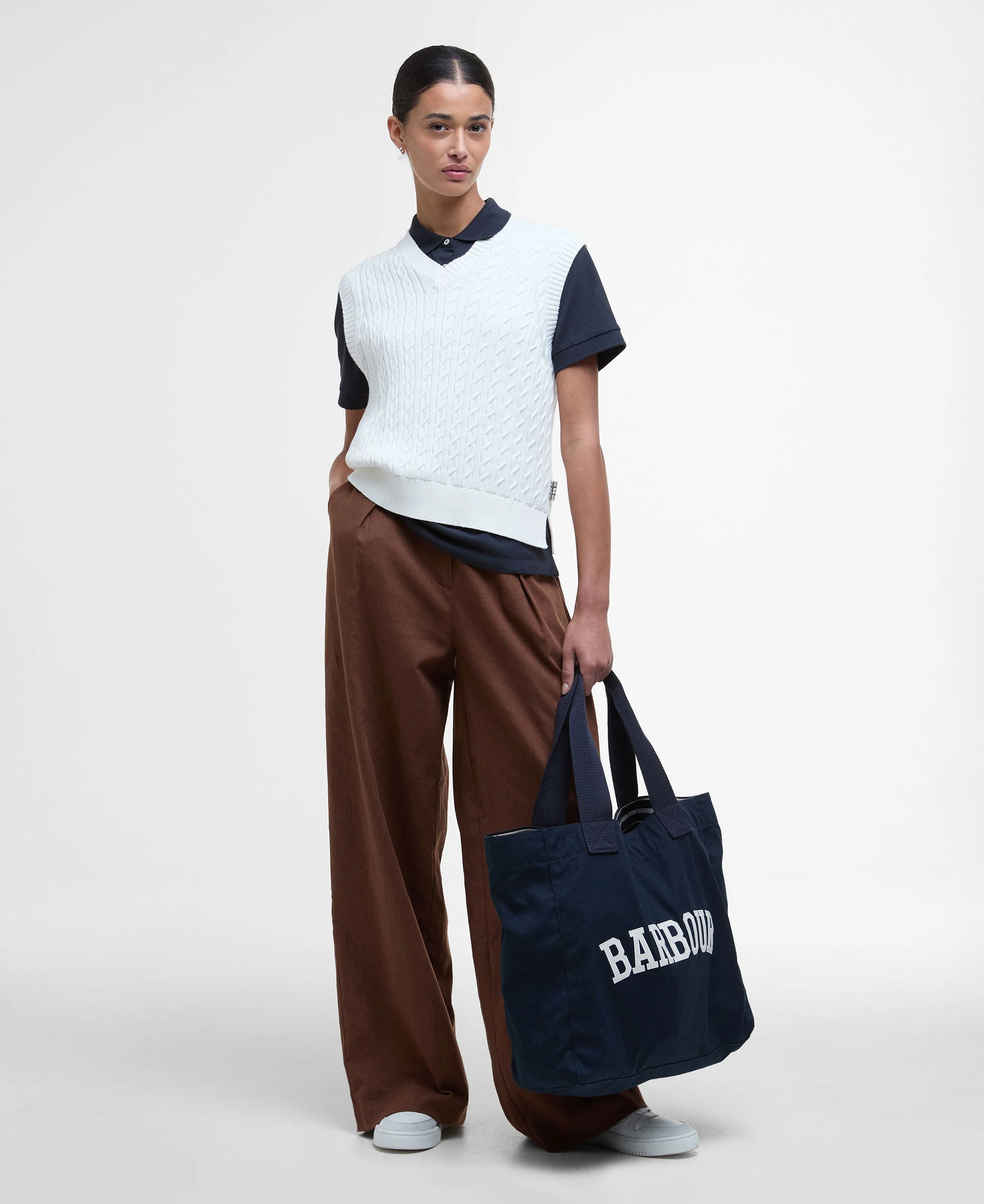 The Barbour Hartland Sweater Vest is a stylish layering piece with a timeless cable knit design. Crafted from soft cotton, it’s perfect for transitioning between seasons. Wear it solo for a relaxed feel or layer over a shirt for effortless style - ideal for adding a touch of texture to any outfit.